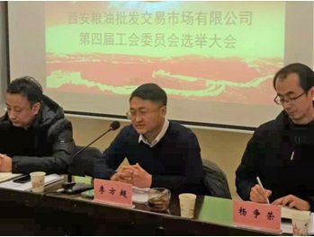 2021年12月10日上午,西安糧油批發交易市場有限公司工會在二樓會議室召開了第四屆第一次會員代表大會,選舉產生了第四屆工會委員會和經費審查委員會。大會應到會員代表30人、實到27人,不是會員代表的經費審查委員會委員候選人列席了會議。西安市物資總公司黨群部副部長王峰,公司黨總支書記、董事長李方超出席了會議。會議由第三屆工會委員會主席張瓊主持。